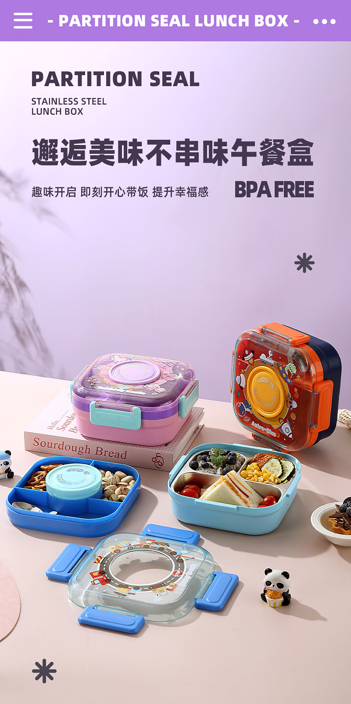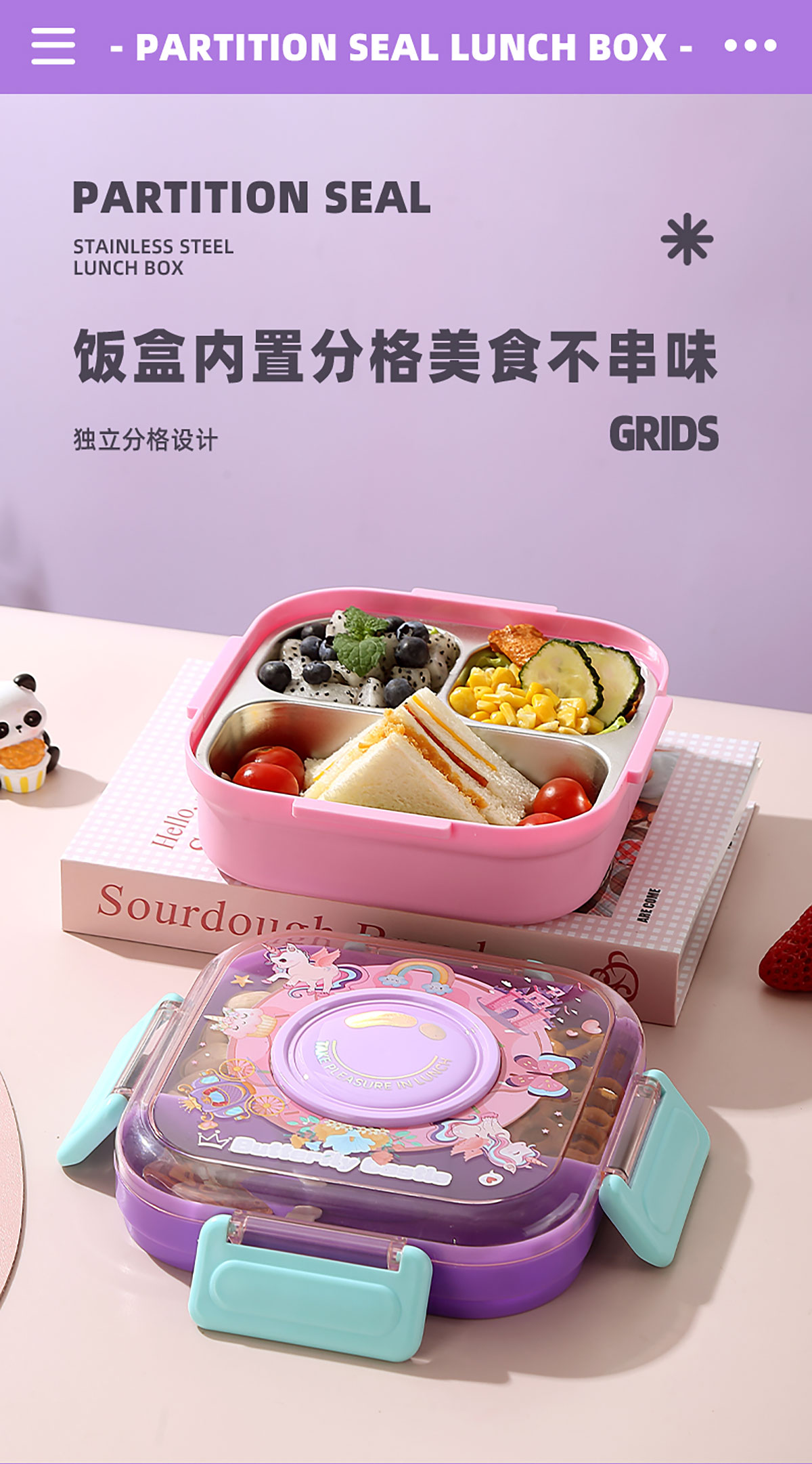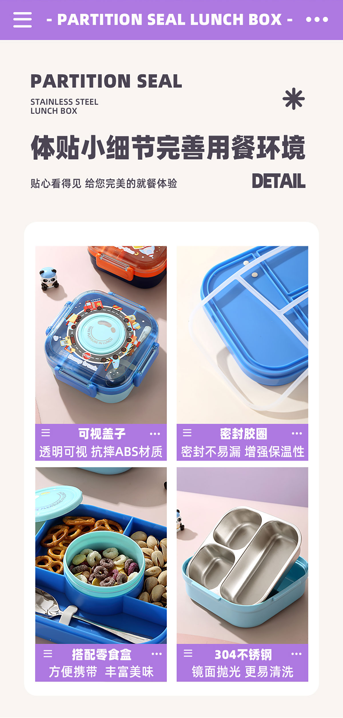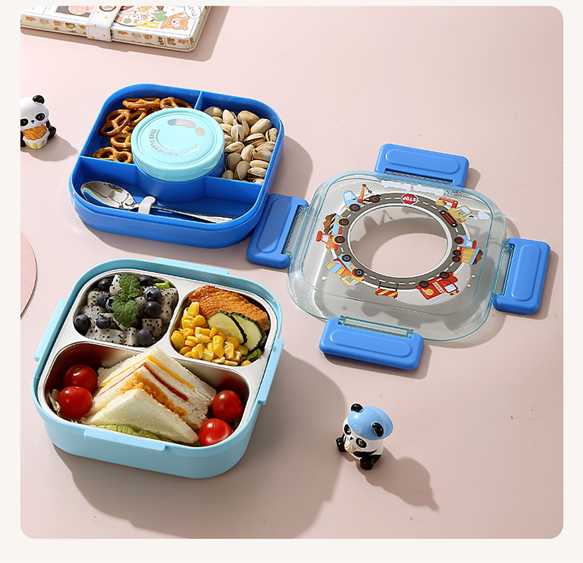 相機(jī)不串味餐盒(方形不銹鋼三格700ml+碗150ml+不銹鋼勺)
