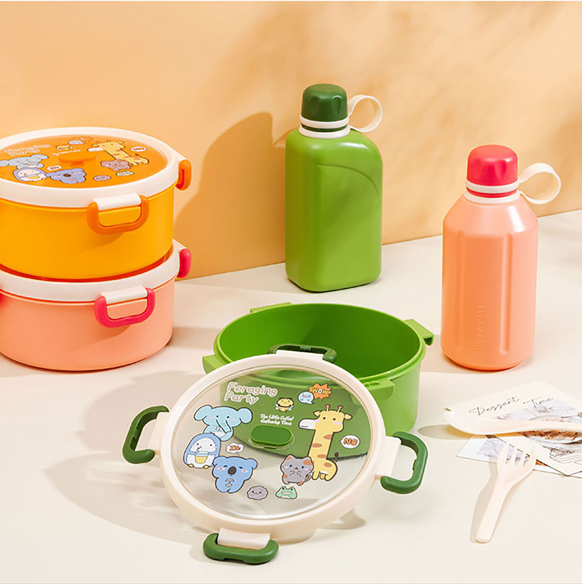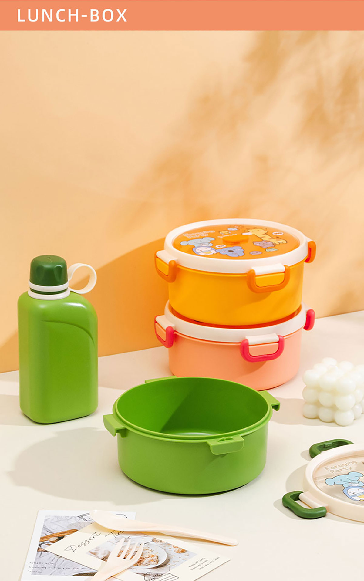 尚趣圓形單層飯盒(1000ml)/+圓形/方形運(yùn)動(dòng)水壺(500ml)