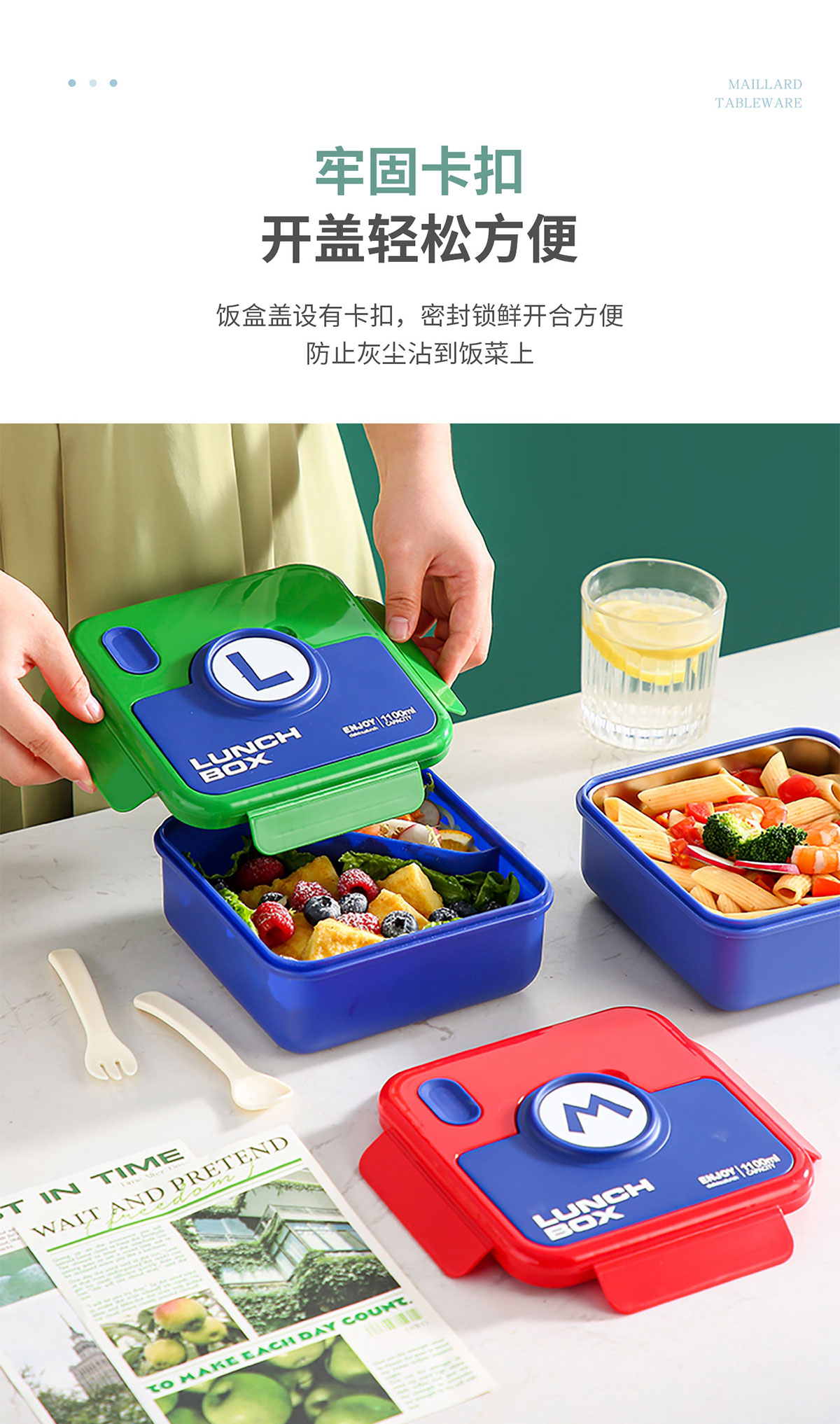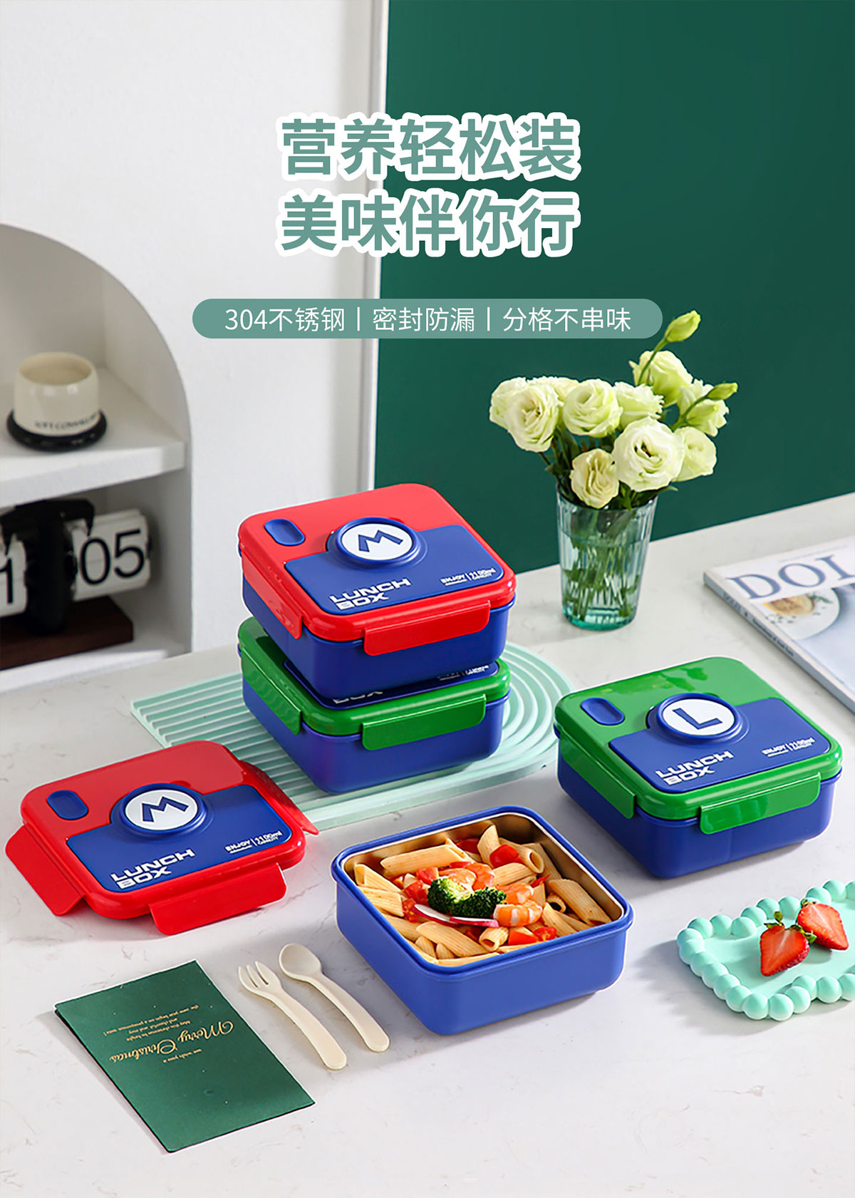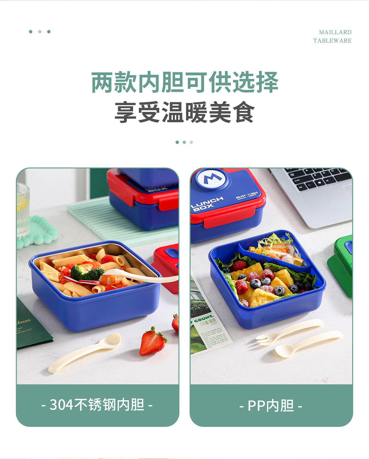 童趣塑料/304不銹鋼飯盒飯盒(配叉+勺)