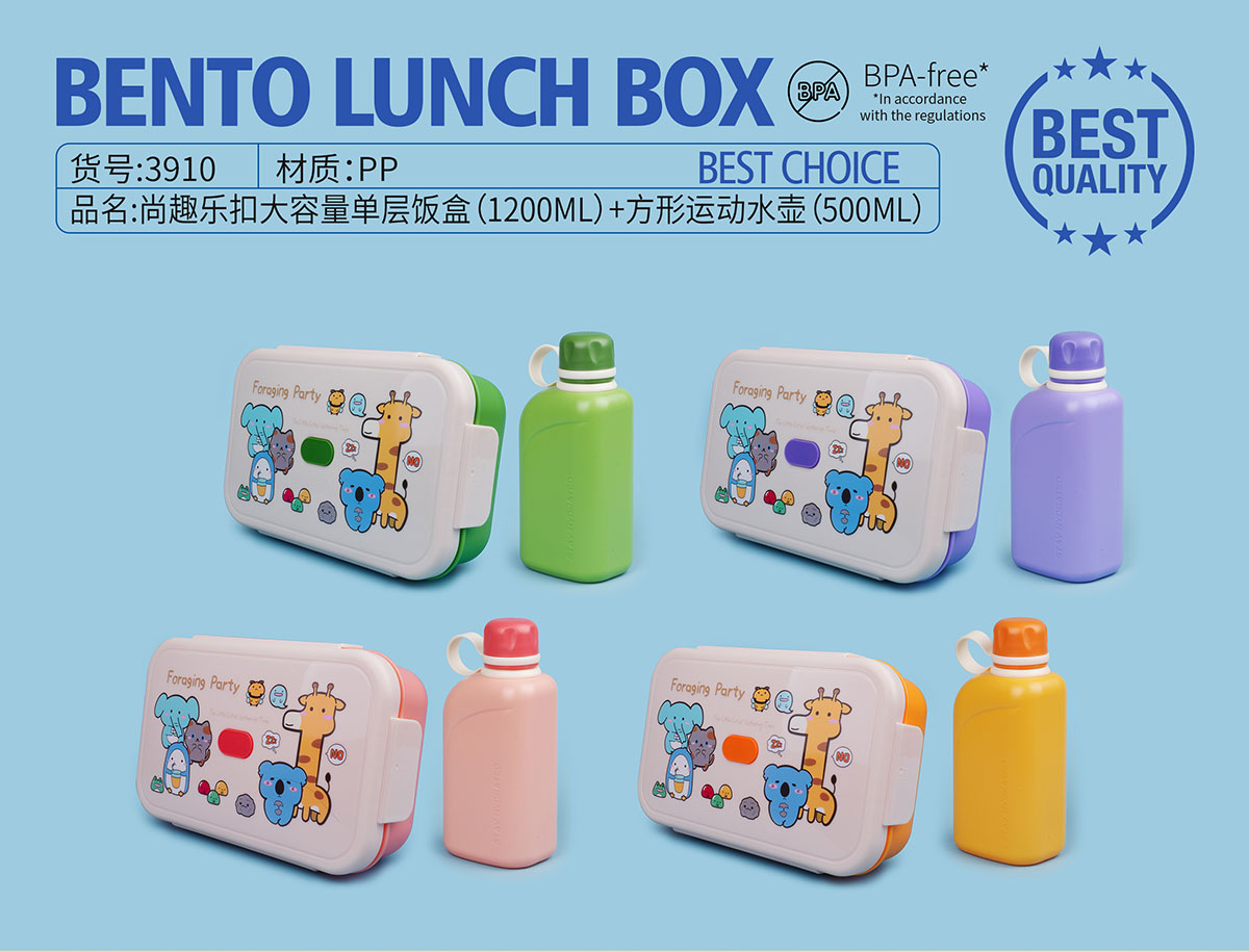 尚趣樂(lè)扣大容量單層飯盒(1200ml)+方形運(yùn)動(dòng)水壺(500ml)