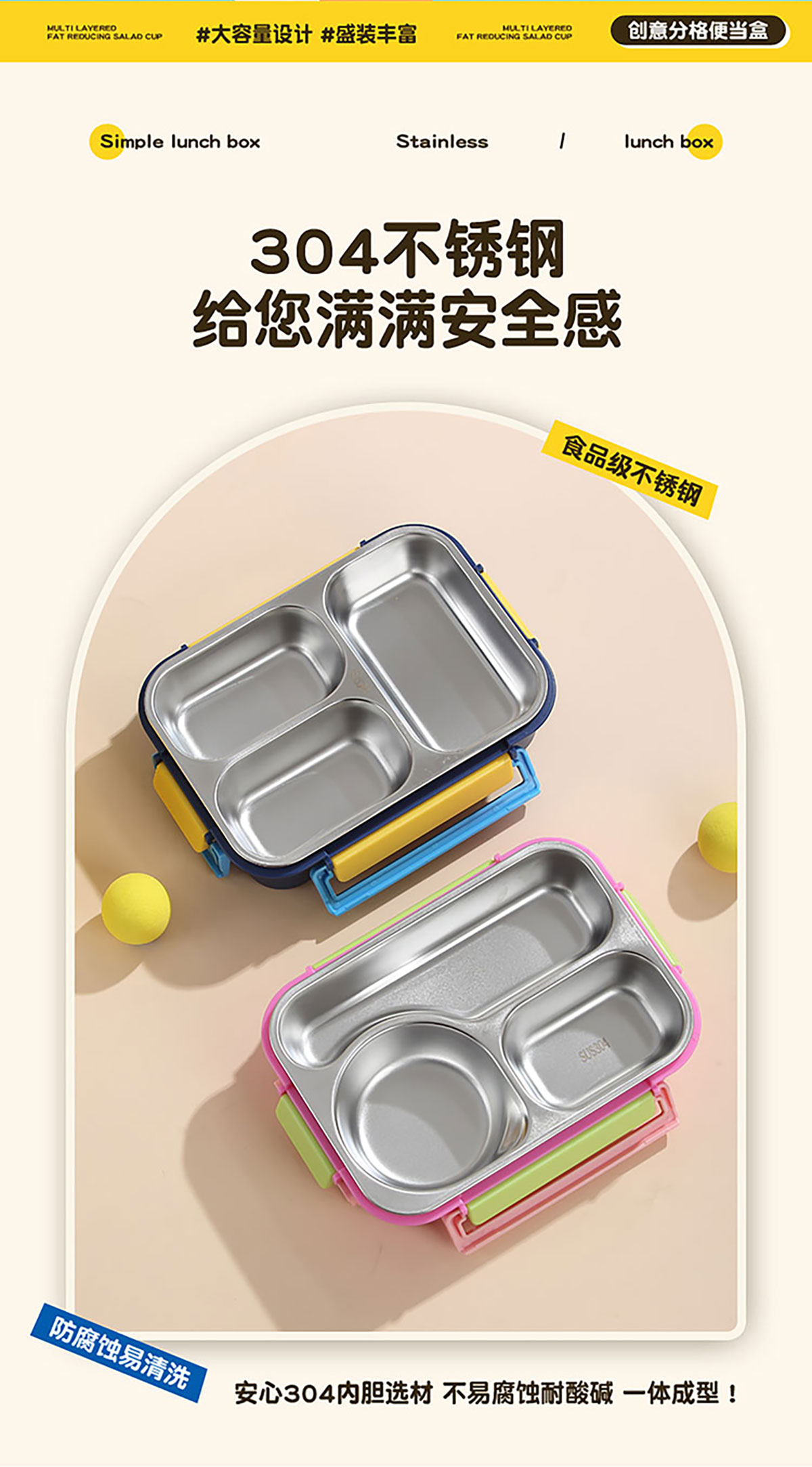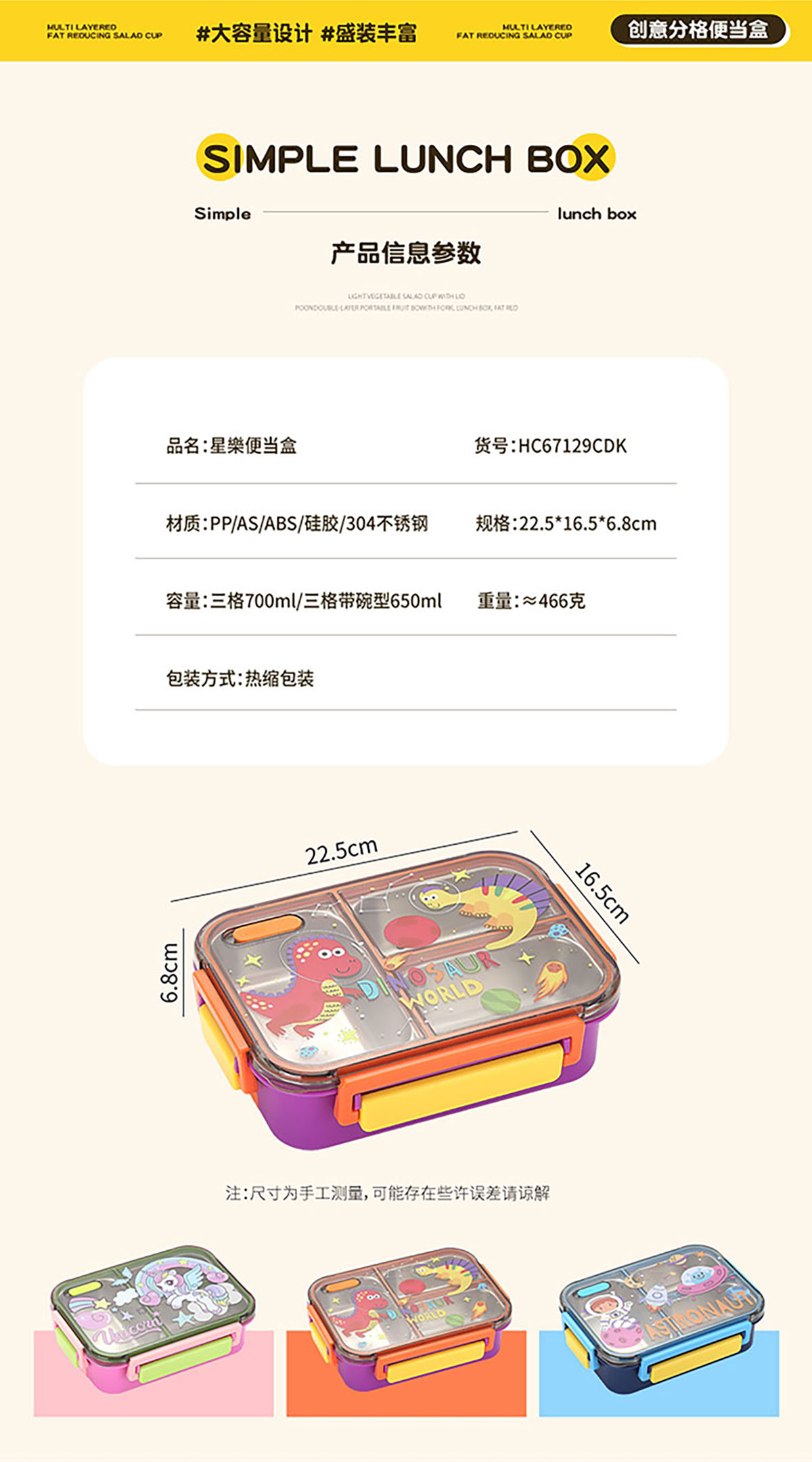 Size: 225*165*68mm(三格700ml/三格帶碗650ml)