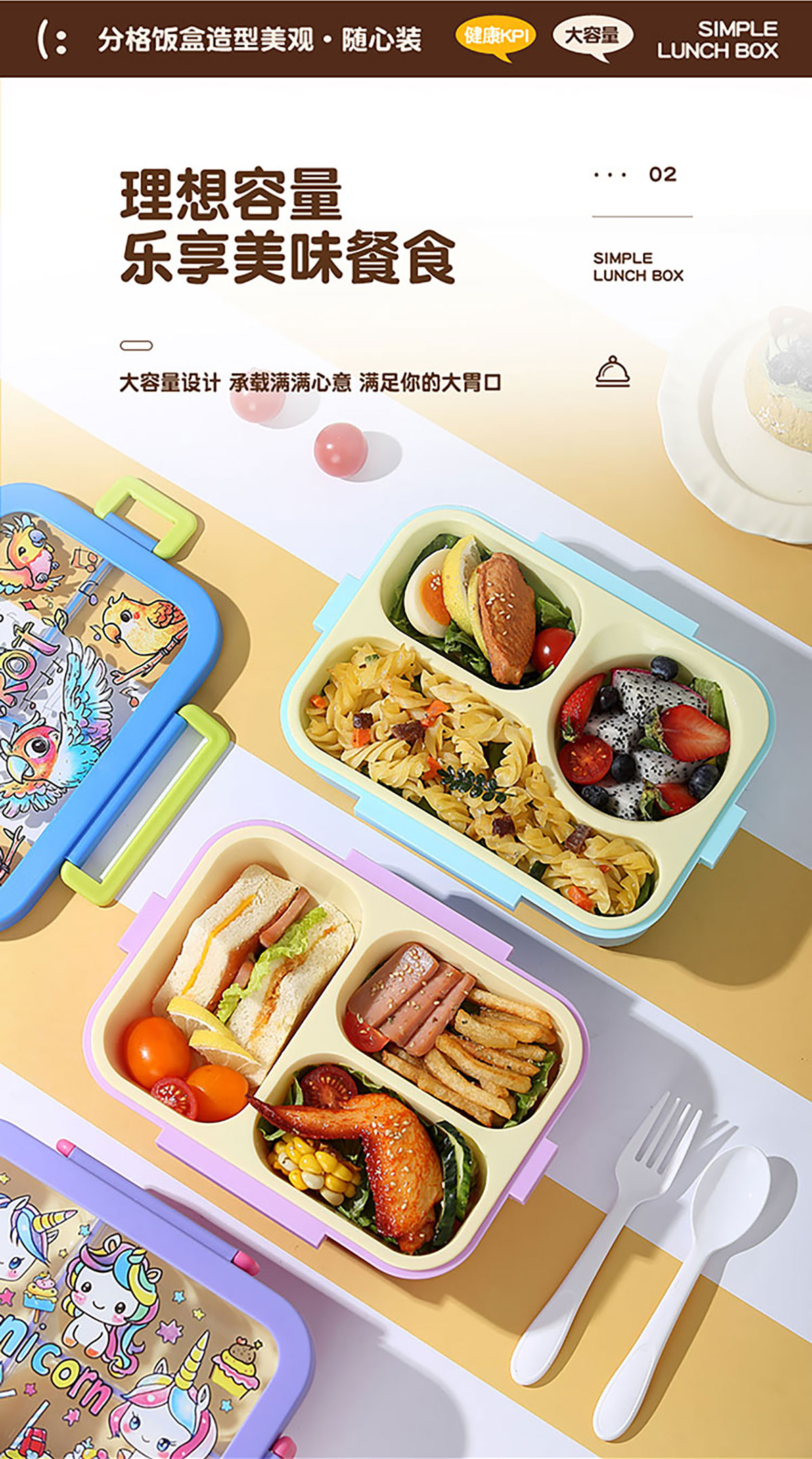星樂卡通便當(dāng)盒 下單可選三格700ml/三格帶碗650ml