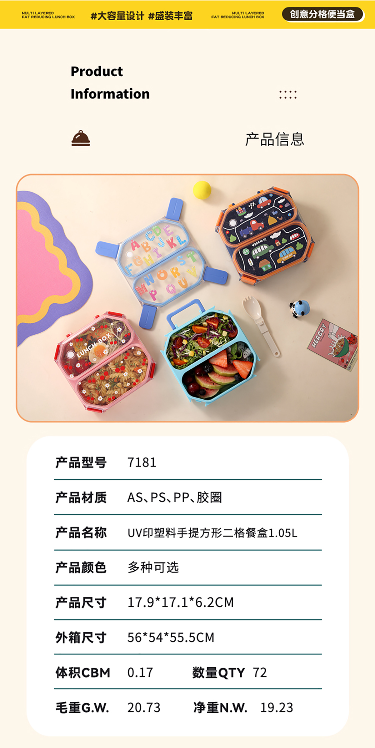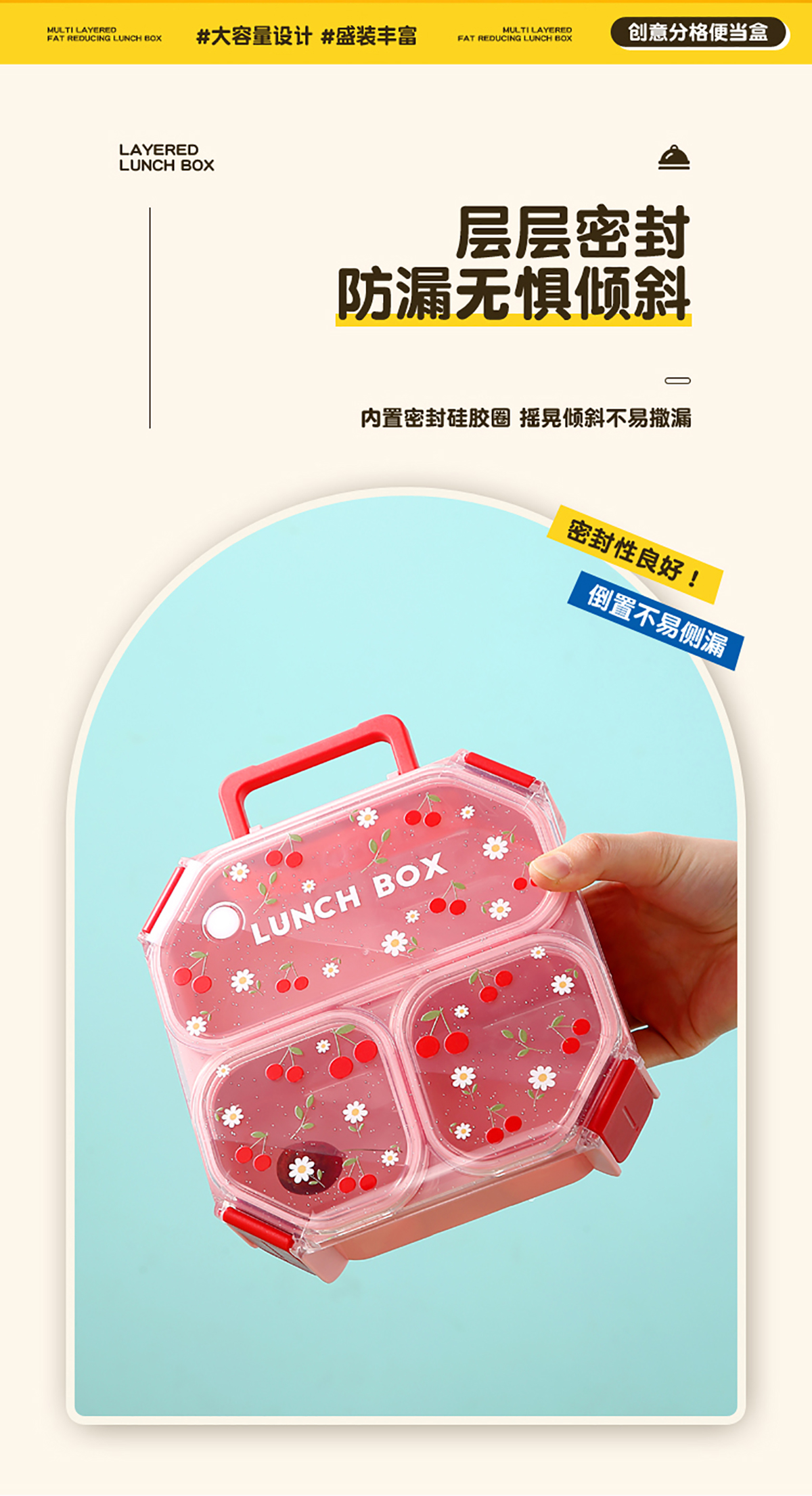 Size: AQX-7181(二格):179*171*62mm/1.05L AQX-7182(三格):179*171*62mm/980ml