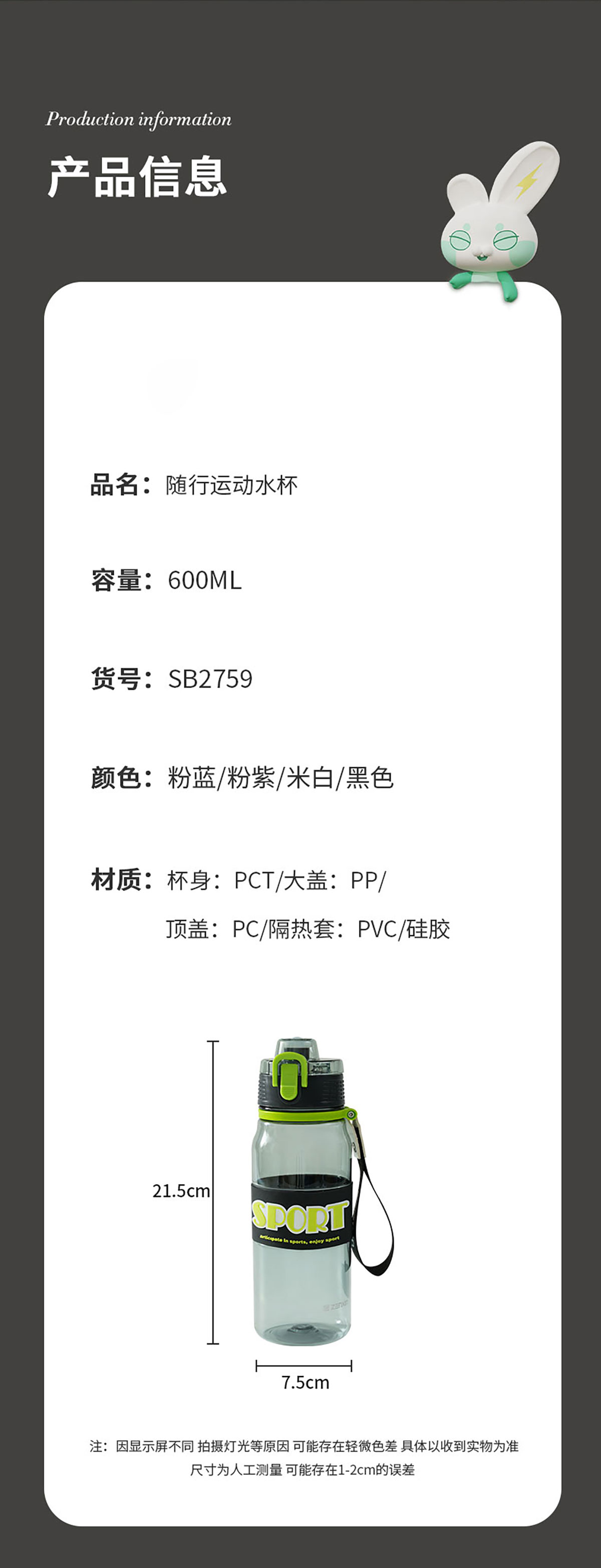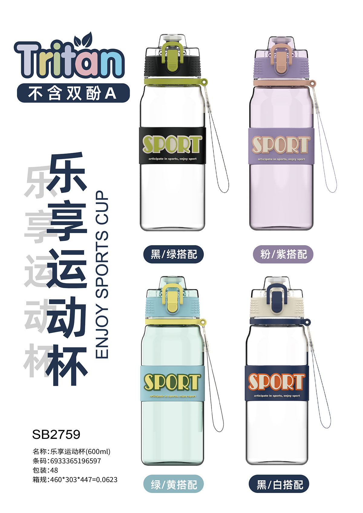 隨行運動水杯(600ml) 彩盒裝/OPP裝